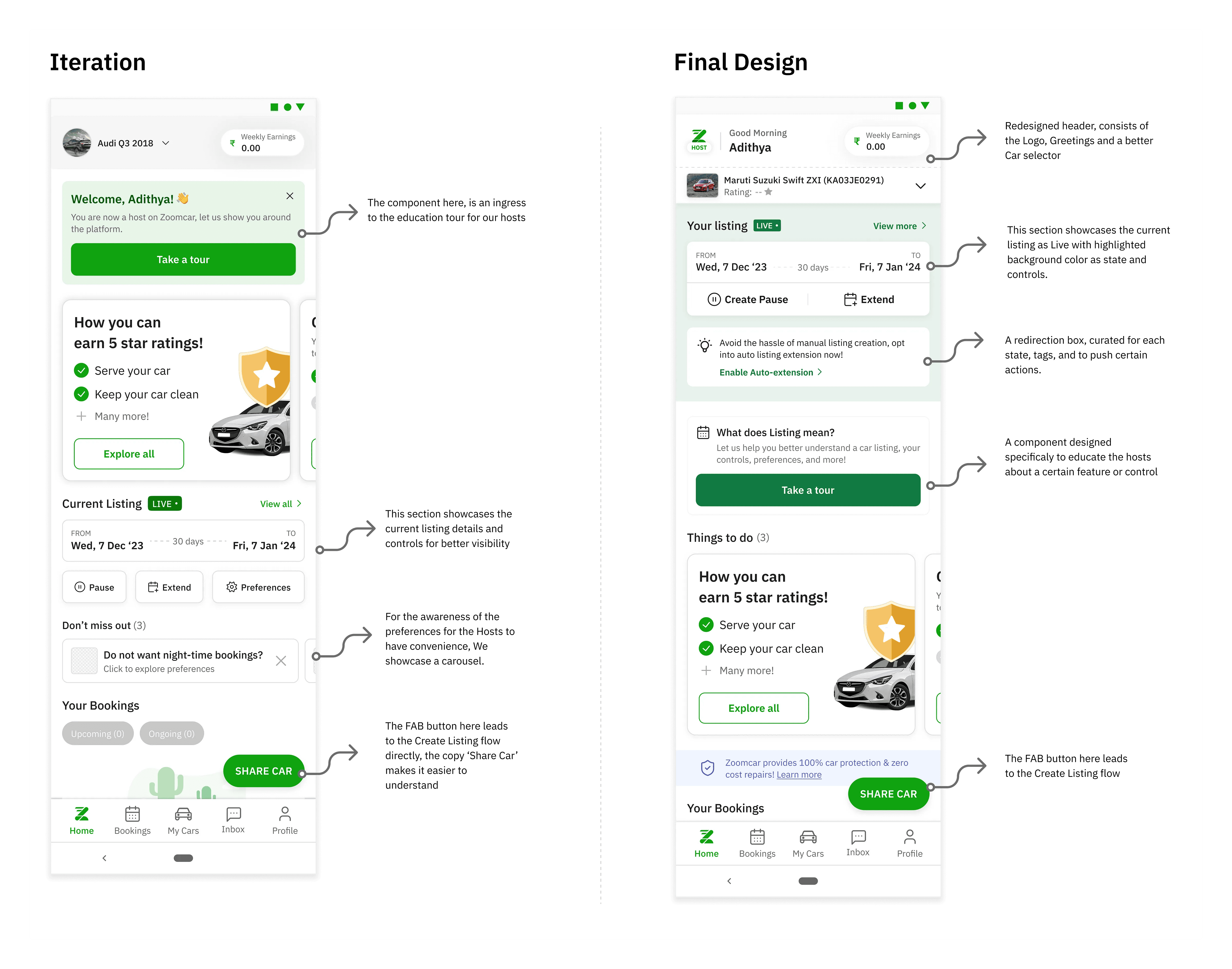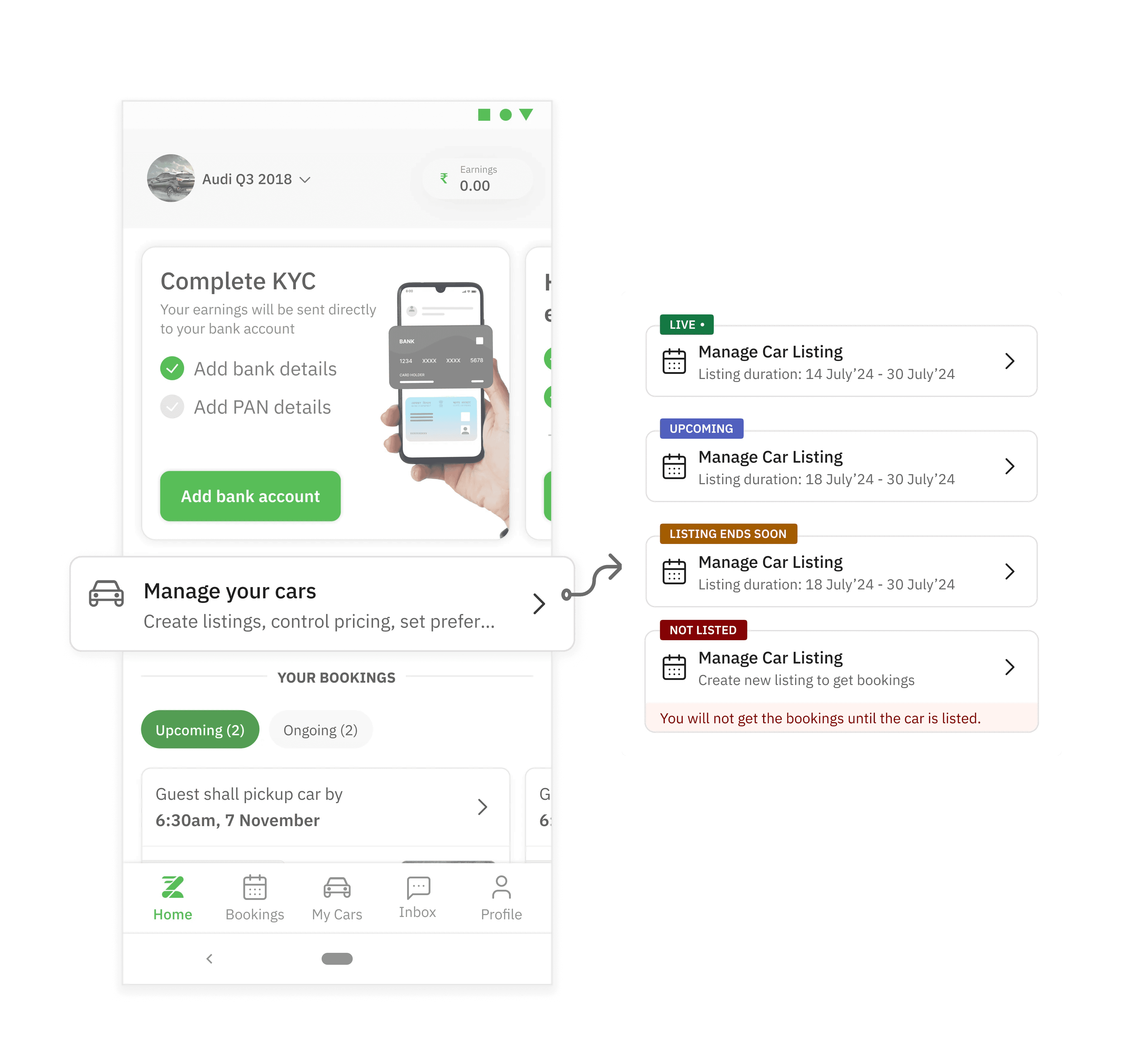 Our research revealed that many Zoomcar Hosts aren’t aware they need to create a listing to start receiving bookings. Additionally, they need more intuitive tools to manage their listings effectively.